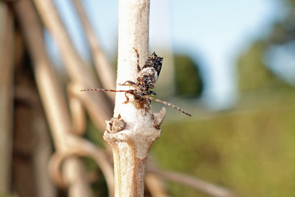 Ich bin wirklich verblüfft. Auch nach 10 Jahren entdecke noch immer neue Tiere im Garten. Im Oktober sind es der Dornige Wimperbock (Pogonocherus hispidus), die Bernstein-Waldschabe (Ectobius vittiventris) und die Gestreifte Grasfliege (Opomyza germinationis).