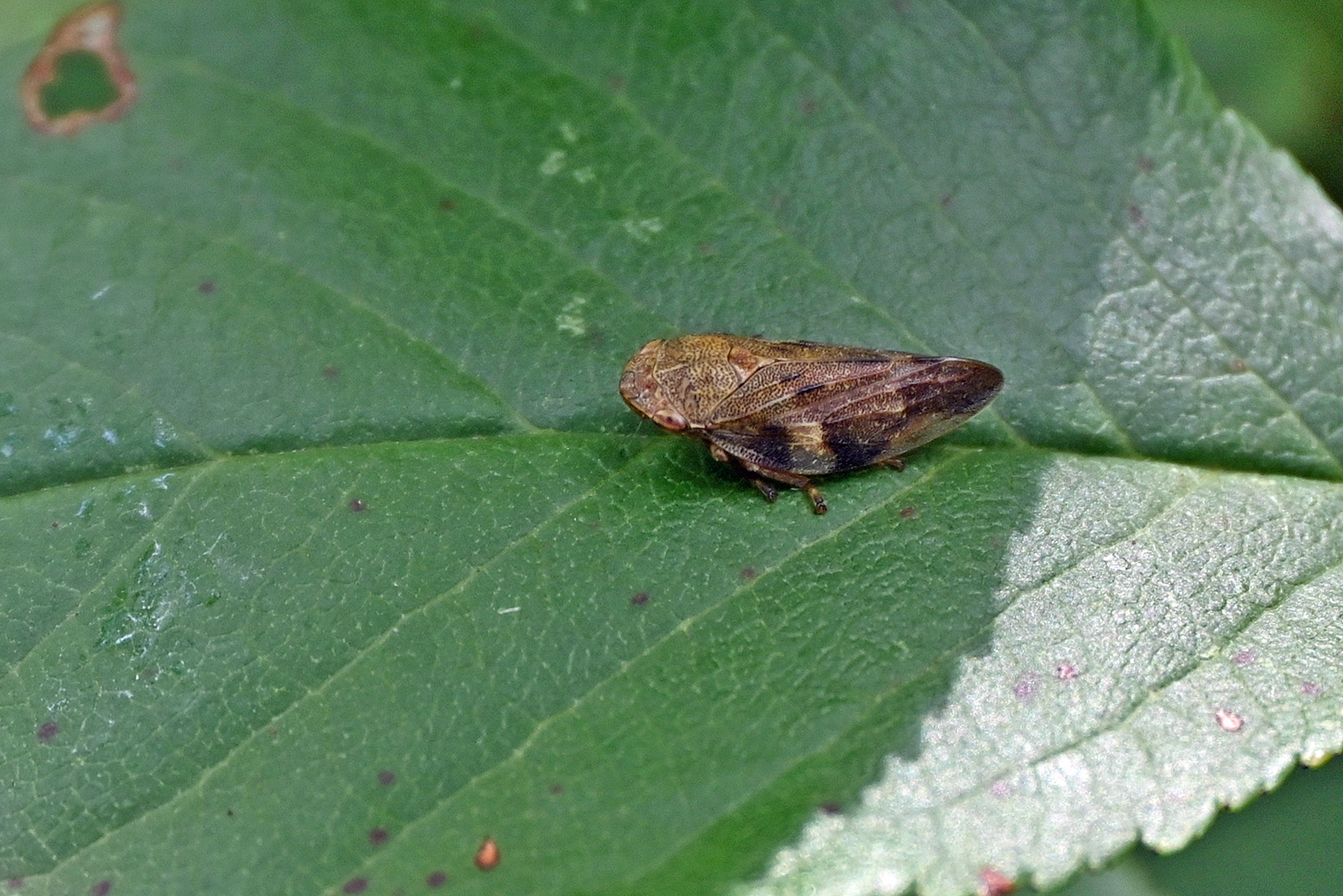 Echte Käferzikade (Issus coleoptratus), Gemeine Blutzikade (Cercopis vulnerata), Rhododendronzikade (Graphocephala fennahi), Südliche Strauchzirpe (Fieberiella florii), Erlenschaumzikade (Aphrophora alni), Zwergzikade (Deltocephalus indet.), Blattzikade (Typhlocybinae indet.)