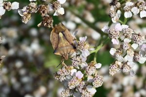 Die Baumwanzen haben einen meist schildförmigen Körperbau und können gut fliegen. Streifenwanze (Graphosoma italicum), Beerenwanze (Dolycoris baccarum), Graue Gartenwanze (Rhaphigaster nebulosa), Grüne Stinkwanze (Palomena prasina), Kohlwanze (Eurydema oleraceum), Nördliche Fruchtwanze oder Gelber Enak (Carpocoris fuscispinus), Grüne Reiswanze auch Südliche Stinkwanze (Nezara viridula), Frühlings-Baumwanze (Peribalus strictus)