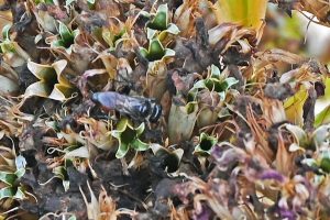 Bei den Tönnchenwegwespen (Auplopus carbonarius) sind die weiblichen Tiere komplett schwarz, die männlichen haben weiße Streifen neben den Augen. Die Weibchen der Tönnchenwegwespe bauen kleine tonnenförmige Brutzellen aus Lehm. Als Nahrung für ihre Larven jagen sie Spinnen, die sie dann für den Transport am Hinterleib packen.