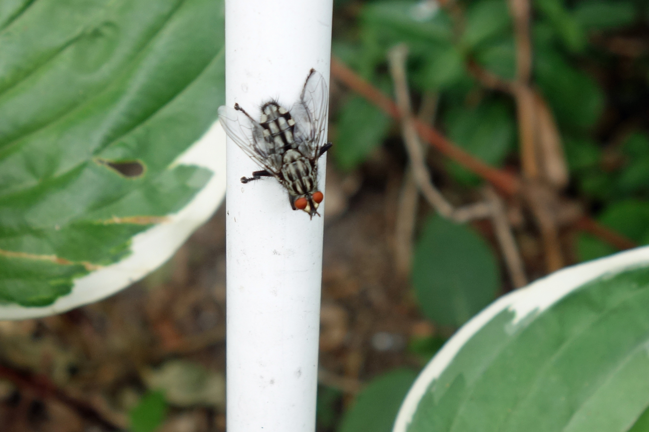 Die Larven der Gefleckten Hausfliege (Graphomya maculata) leben räuberisch von anderen Fliegenlarven wie zum Beispiel die der Mistbiene.