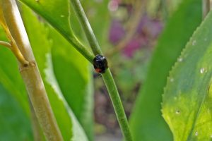 Käfer gab es in meiner Kindheit massenhaft. Kartoffelkäfer (Leptinotarsa decemlineata), die abgesammelt wurden und auf den Brennesseln zuhauf die prächtigen buntschillernden Goldglänzenden Blattkäfer (Chrysolina fastuosa). Beide Käferarten habe ich seit gefühlten Ewigkeiten ebenso wie Ölkäfer, große Laufkäfer, große Bockkäfer und, und, und … nicht mehr gesehen. Aktuell freue ich mich über jedes noch so kleine Käferlein. Doch wenn ich anfange zu googeln, stoße ich regelmäßig auf Begriffe wie Schädling, Tipps zur erfolgreichen Bekämpfung, Schadbilder. Einzig der Siebenpunkt-Marienkäfer (Coccinella septempunctata) und der Goldglänzende Rosenkäfer (Cetonia aurata) einschließlich seiner Engerlinge kommen gut weg. Was mich betrifft, freue ich mich über jeden Käfer und vertraue darauf, dass sich ein ökologisches Gleichgewicht von „Fressen und gefressen werden!“ einstellt. Bis jetzt haben sich die „Schadbilder“ in meinem Garten in Grenzen gehalten. Seht selbst, wer in meinem Garten krabbeln darf.